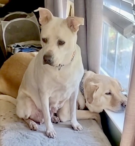 🩷 Cricket is 48 lbs., spayed, heartworm “negative,” all vaccinations are current, and she doesn’t mind getting her nails trimmed! My goodness, she is EASY!